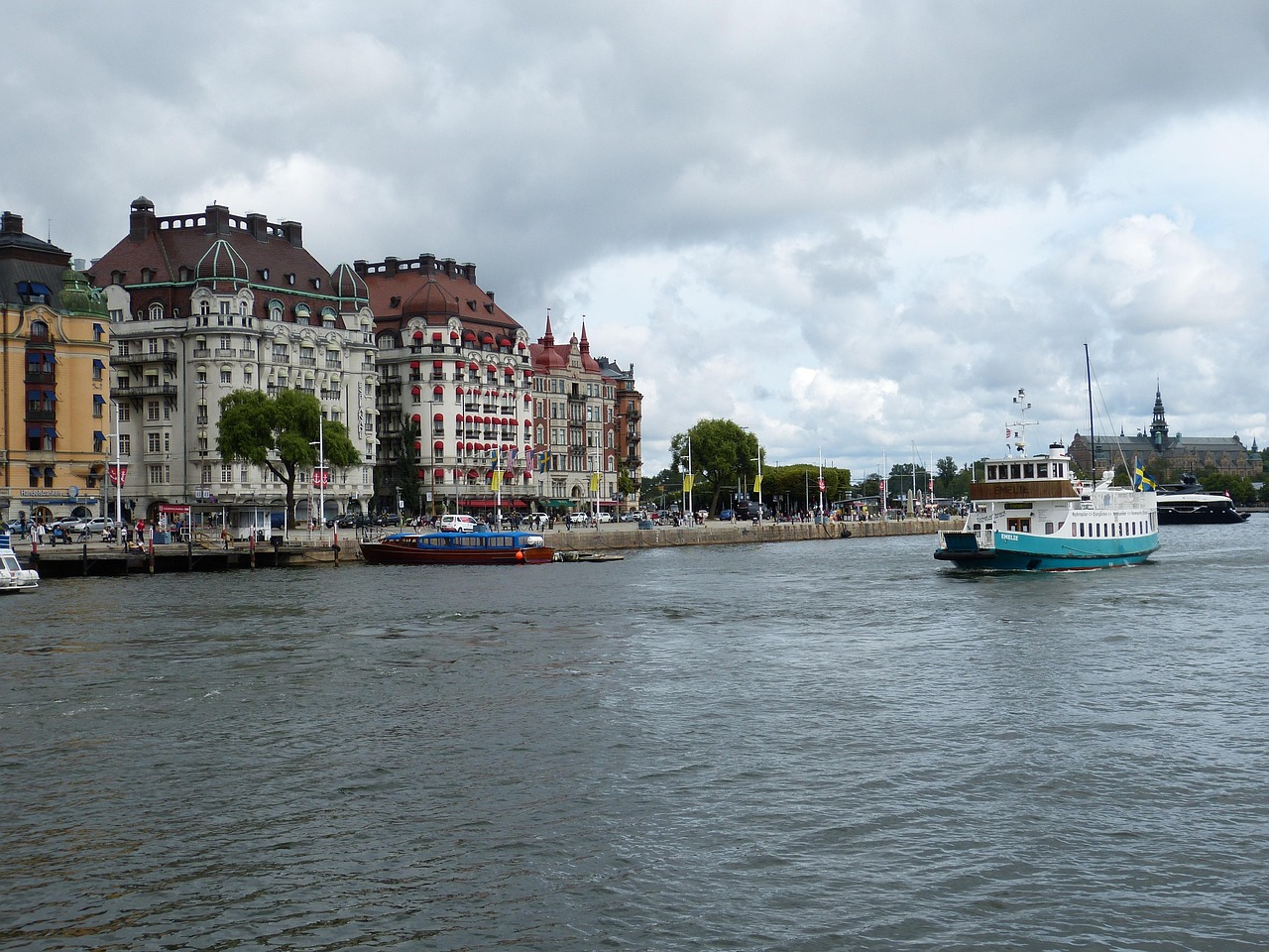 Från Nacka-sidan av inloppet går pendelbåtar in mot Stockholm. Båten är ett alternativ till buss in till stan, särskilt rusningstid. För många känns det mer som en bonuskvalitet än en primär transportform – men det är ändå en konkret sak som skiljer Nacka från många andra områden. Du kan faktiskt pendla sjövägen.